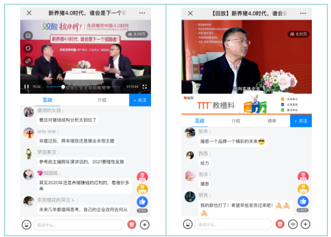 此次直播,獲得愛豬網(wǎng)、中國(guó)養(yǎng)豬網(wǎng)、豬易傳媒、牧業(yè)前沿、賽爾傳媒、播恩live六大媒體進(jìn)行同步轉(zhuǎn)播,更吸引了36萬+人次的駐足觀看。直播間網(wǎng)友紛紛表示此次直播收獲很多,也在2021年的預(yù)測(cè)與展望中摸索到了自己的致富經(jīng)。