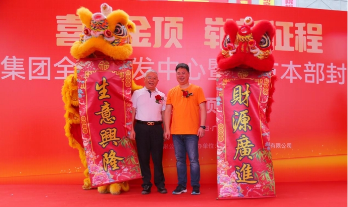 播恩集團(tuán)董事長(zhǎng)鄒新華和蔣宗勇理事長(zhǎng)為封頂儀式進(jìn)行了醒獅點(diǎn)睛。