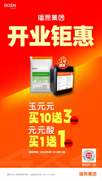 8月1日,播恩集團(tuán)正式入駐電商平臺,播恩元元電商官方直營店正式開業(yè)。為回饋養(yǎng)殖戶,讓更多畜禽養(yǎng)殖人享受到清潔養(yǎng)殖的福利,播恩特推出核心的元元電商雙酸清潔系列產(chǎn)品,首波商品包括了:酸的飼料「玉元元」四驅(qū)雙酸發(fā)酵料+酸的環(huán)境「元元酸」酸化劑,全階段適用,是清潔養(yǎng)殖、助力消化、提升健康的優(yōu)勢選擇。