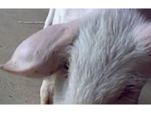 9、豬耳朵發(fā)紅發(fā)紫或壞死