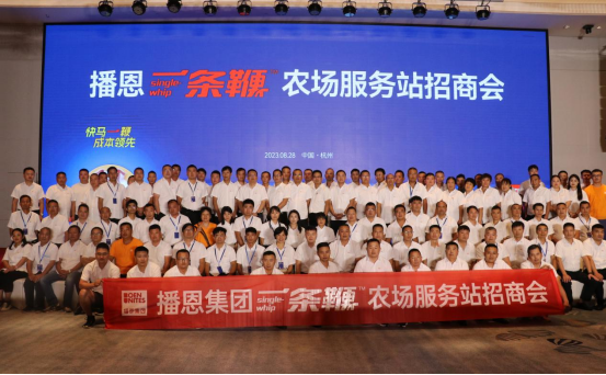 8月28日,播恩集團副總裁/營銷中心總監(jiān)曹劍波與集團各戰(zhàn)區(qū)總監(jiān)攜一百余名客戶在浙江杭州召開播恩集團一條鞭農(nóng)場服務站招商會。
