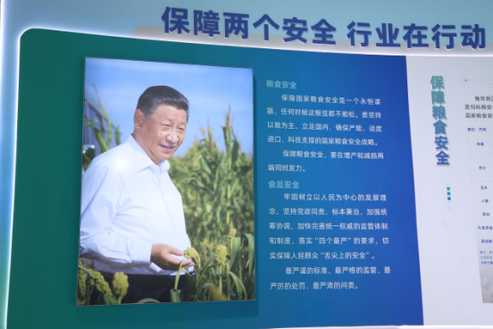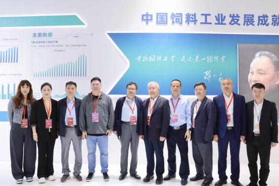 播恩集團董事長鄒新華(左四)于中國飼料工業(yè)協(xié)會成立40周年主題展區(qū)現(xiàn)場