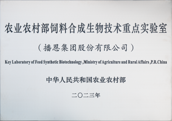 播恩集團于2023年獲授農(nóng)業(yè)農(nóng)村部飼料合成生物技術(shù)重點實驗室
