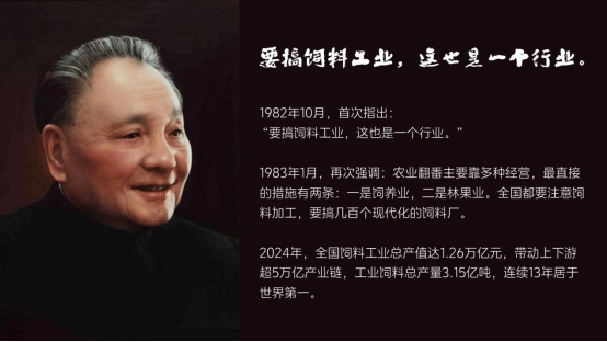 1982年10月,“要搞飼料工業(yè),這也是一個行業(yè)”被提出,如今,中國飼料工業(yè)已成為全球標桿。2024年,全國飼料工業(yè)總產(chǎn)值達1.26萬億元,帶動上下游超5萬億產(chǎn)業(yè)鏈,工業(yè)飼料總產(chǎn)量3.15億噸,連續(xù)13年居世界第一,73萬從業(yè)者正以精銳之師支撐起全球最大飼料產(chǎn)業(yè),實現(xiàn)從“量”的積累到“質(zhì)”的跨越。這數(shù)據(jù)的背后,是“中國力量”。